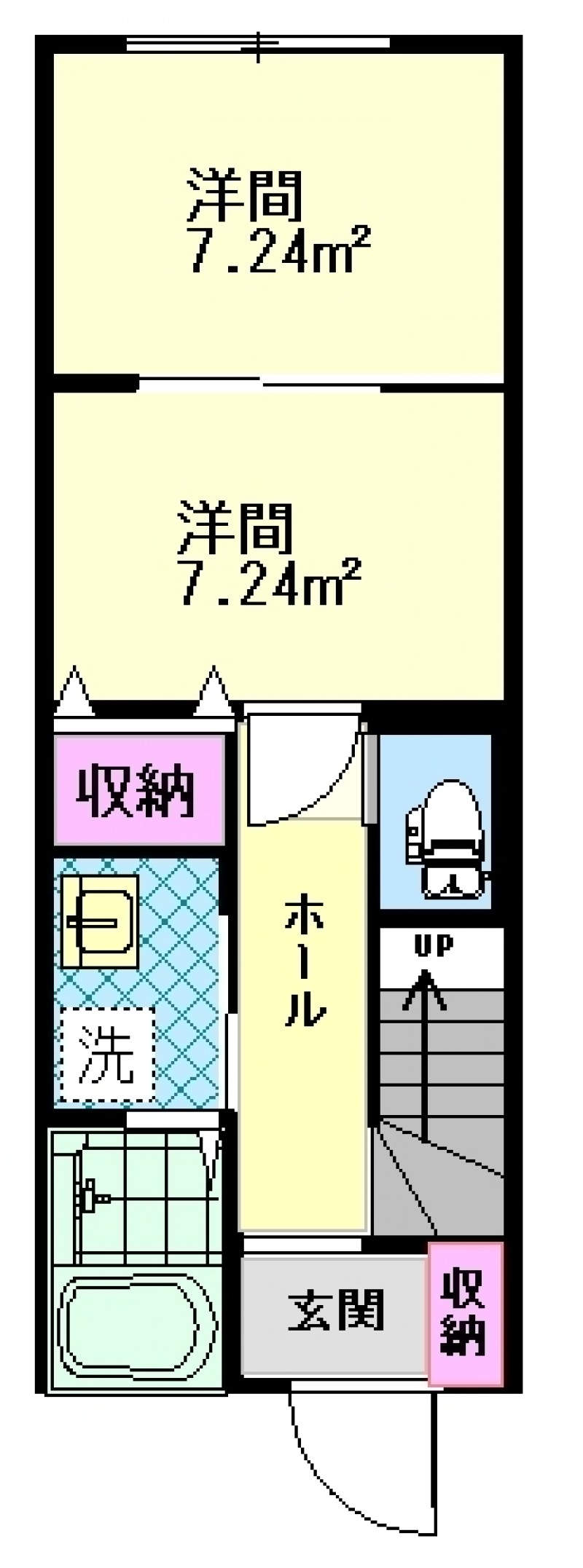 メゾネットタイプ、 システムキッチン(2口ガス台)、室内洗濯機置場、 エアコン1基、独立洗面台、ウォシュレットトイレ、追炊き機能